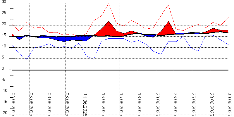 Mitteltemperatur: 16.8 °C (16.8 K)