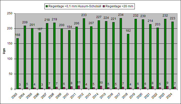 | Regentage >0,1mm | einschließlich abgesetzter Niederschläge ( Tau, Reif ) |
