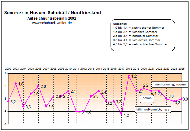Der Sommer 2025 war nach Auswertung der Monate Juni bis August in Husum-Schobüll ein normaler Sommer.
